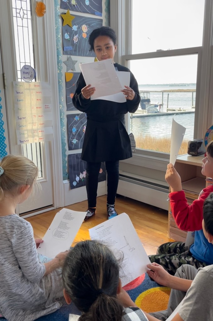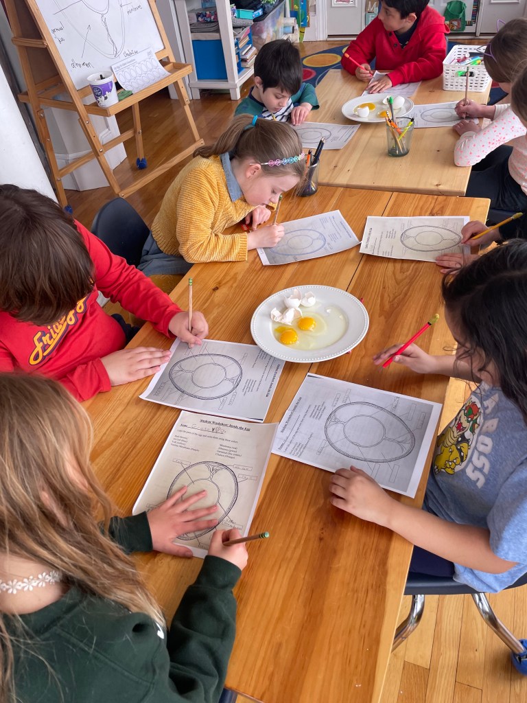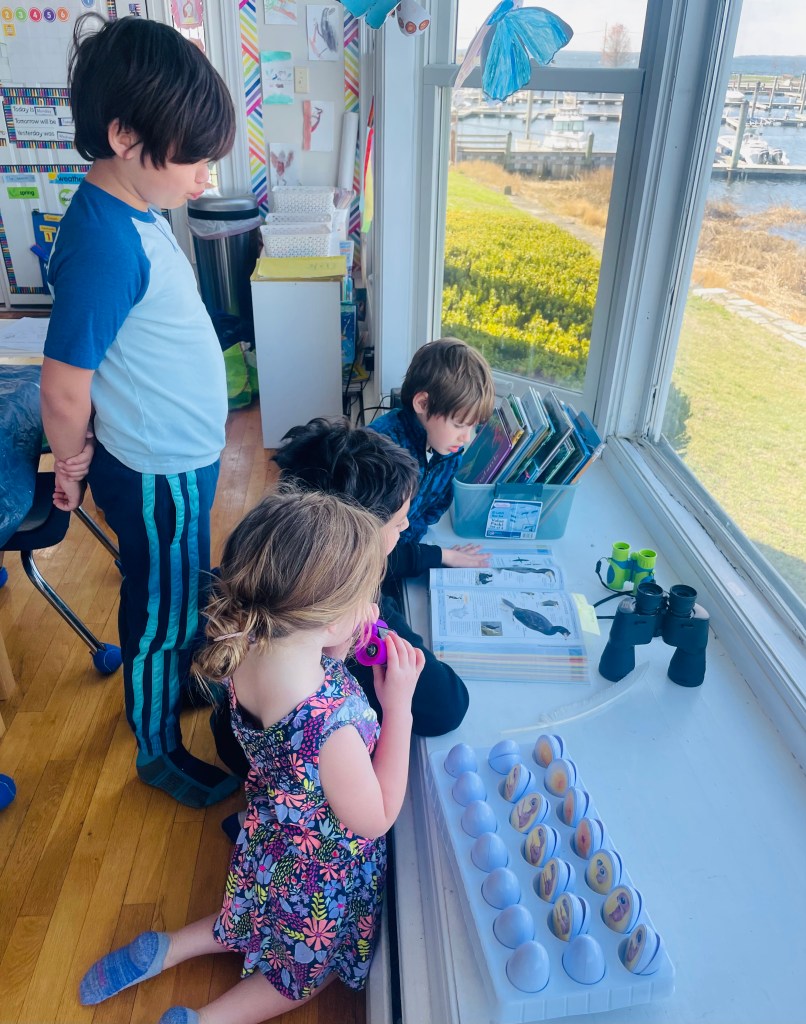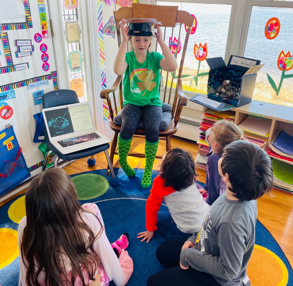 Drop off would be at 9 at our new East Providence location. We have a soft start as some families are commuting from afar. We have a morning meeting to discuss our learning goals for the day. Lessons in science, reading, writing, art and more would take place until our mid-morning snack break. This is followed by outdoor play and exploration. Then, back to more student-driven, inquiry based learning until noon. We will enjoy our packed lunch and have free play. The last hour of our day will be filled with topic lessons, poetry, physical education or art until pick-up at 2 sharp.