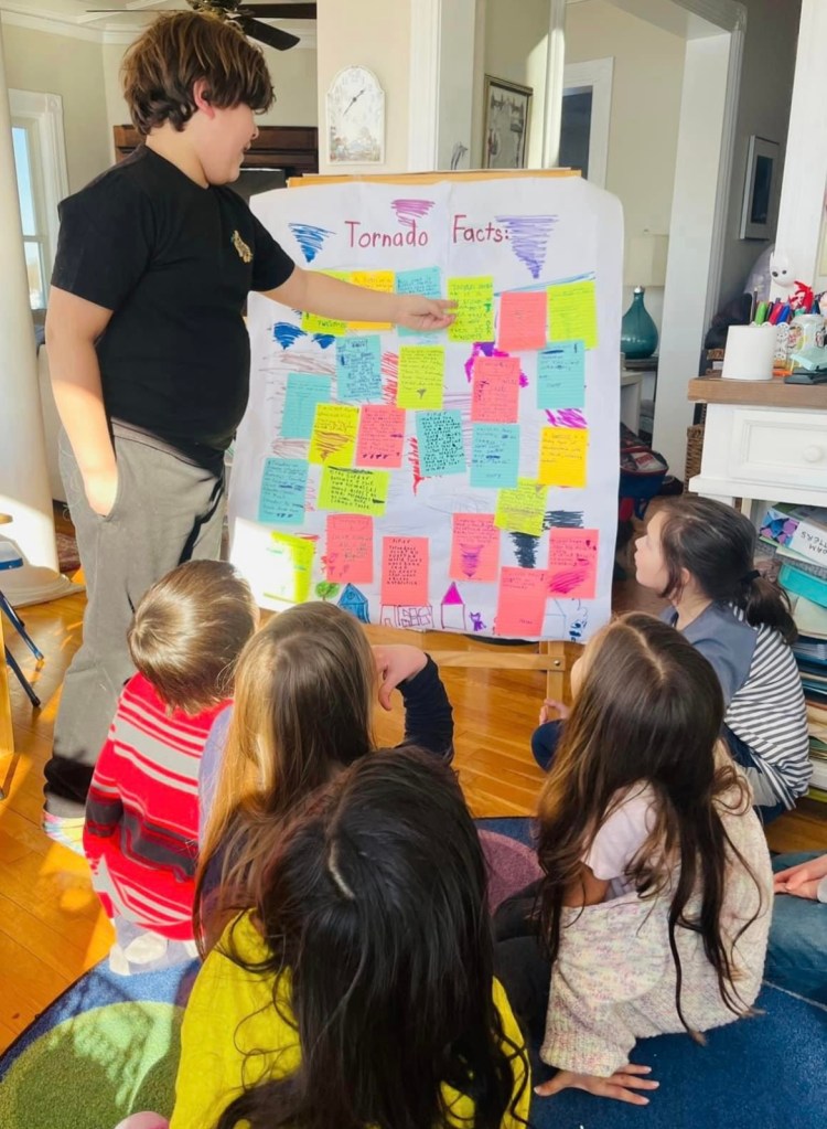 Please enjoy some photos below of what pod learning with me would look like and some examples of student work. Photo permission has been given by all families of children appearing on this web site.